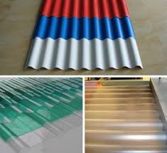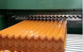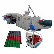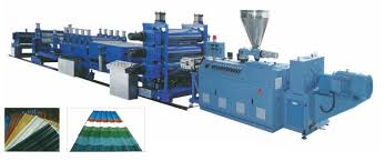 PVC roof sheet production line is comprised by a twin conical screw extruder and corresponding wave plate forming machine, tractor and cutting machine, can be used for continuously produce structural season resistance UPVC color block igniting plastic cement wave plate, if replacing the relevant component, the line can produce the chequer plank, possess steady molding performance, tight structure, high autmomation degree.