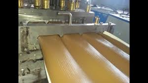 This line consists of extruder, co-extruder, embosser, constant temperature oil tank, vacuum calibrator tank, punching machine, haul off, cutter and stacker.
